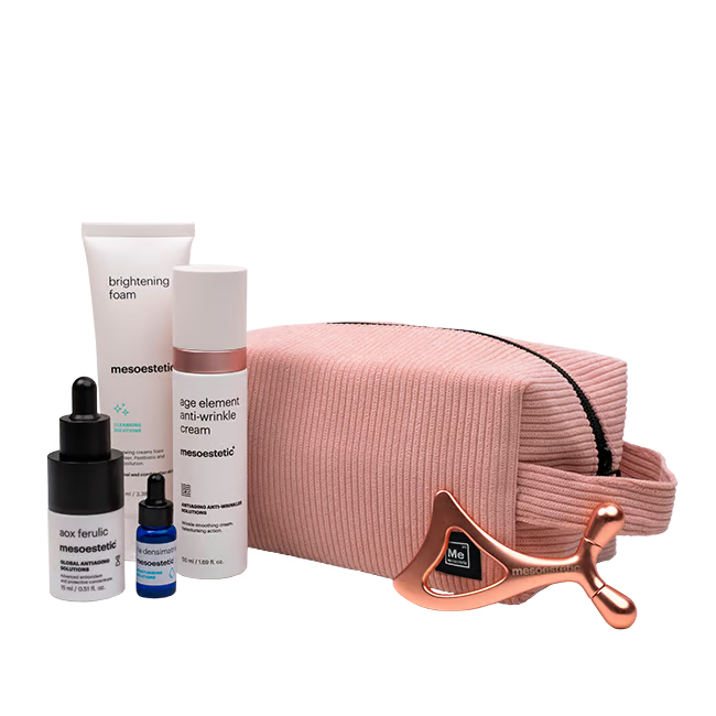 Pack antiedad exclusivo que incluye una fase de limpieza y una fase de tratamiento para quienes buscan una piel más lisa y sin imperfecciones.