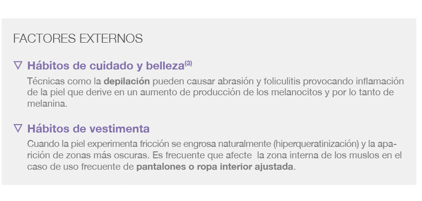 dermamelan® íntim és el mètode despigmentant antiedat que proporciona una acció correctiva i reguladora, aconseguint un resultat eficaç a curt i llarg termini per corregir la hiperpigmentació de: